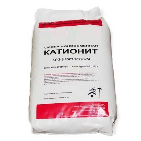 Катионит должен храниться в закрытой заводской упаковке в сухих и чистых складских помещениях, при температуре не ниже +2 °С, на расстоянии от отопительных приборов не менее 1 м, отдельно от минеральных кислот, окислителей, щелочей и анионитов. Срок годности – 12 месяцев с момента производства.