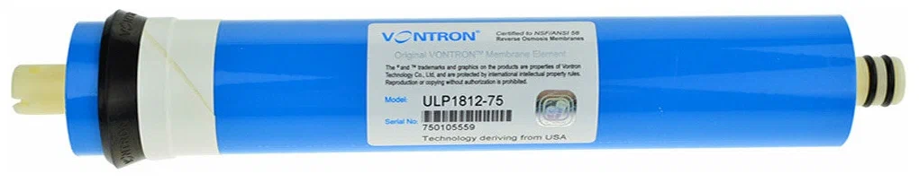 Мембрана осмотическая Vontron ULP1812-75 удаляет из воды неорганические и органические загрязнители, железо, марганец, тяжелые металлы, различные растворенные примеси, бактерии, вирусы и т.д.
